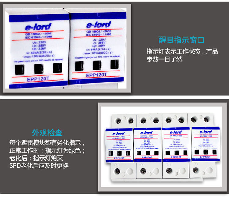 EPP系列交流型電源SPD是由多個(gè)單片式防雷芯片組成,針對(duì)不同配電系統(tǒng)所要求,可以自由組合成單相或三相保護(hù),防止感應(yīng)過電壓或操作過電壓對(duì)低壓用電設(shè)備的損壞